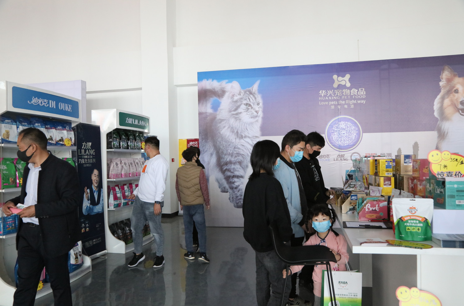 會展中心正門口便是華興寵物食品的展位,剛開展就已經有顧客開始參觀咨詢。