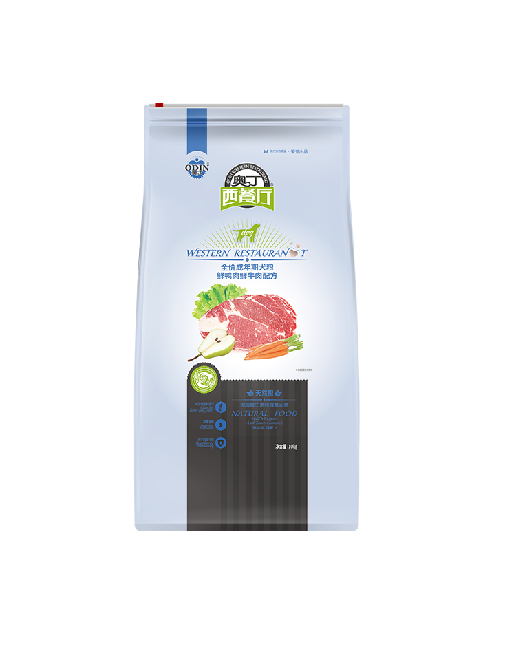 原料組成:鮮鴨肉(26%)、糙米、全小麥粉、玉米、雞肉粉、鴨肉粉、雞油、牛油、鮮牛肉(3%)、燕麥、牛肉骨粉(3%)、蛋黃粉、凍雞胸肉、甜菜、谷朊粉、凍牛骨、凍雞骨、寵物飼料復合調味料、脫水牛肉、脫水鴨肉、纖維素、胡蘿卜粉(0.5%)、梨粉(0.5%)、螺旋藻粉、車前子、絲蘭粉。